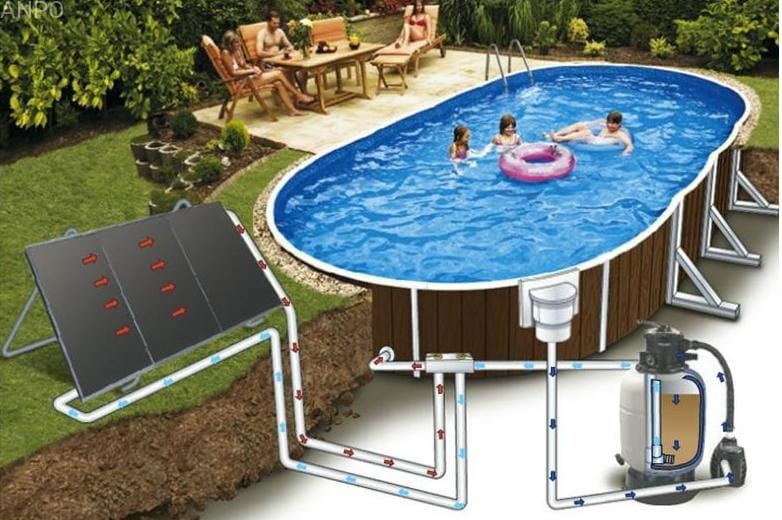 Panel solarny - do basenów ogrodowych. Kolektor jest bardzo lekki i wydajny, potrafi podnieść temperaturę wody w basenie do 6’C. Kolektor podłącza się w obieg filtracji i nie potrzebne jest żadne dodatkowe źródło zasilania. Najbardziej docenicie Państwo zaletę stosowania kolektora gdy noce są chłodne a dni słoneczne. Zastosowanie kolektora słonecznego wydłuża sezon kąpielowy nawet o kilka tygodni. Jeden panel przewidziany jest max do 20m3 wody optymalnie do 16m3 wody w basenie.